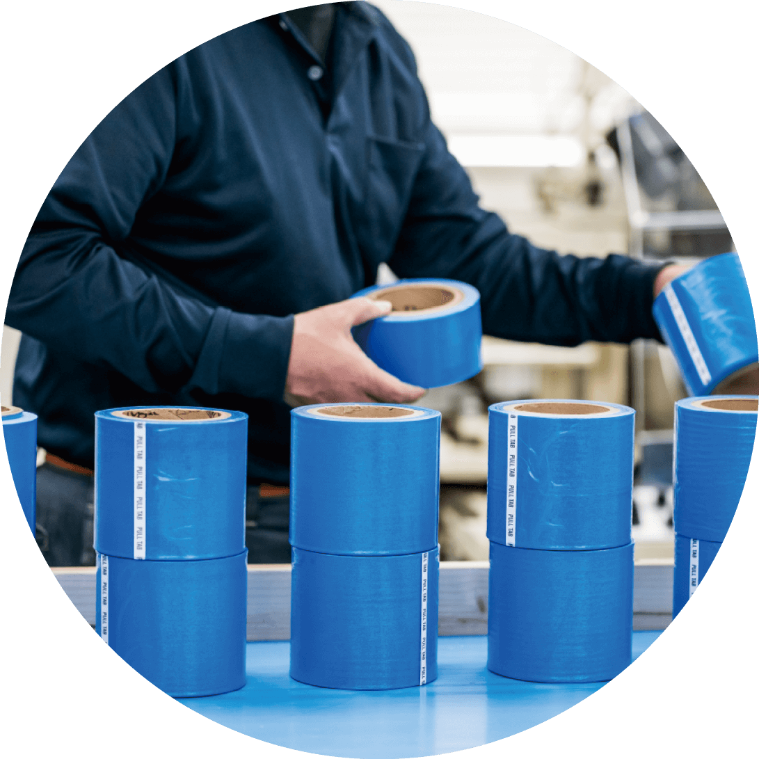A私たちは金属板素材の加工・運搬・施工の各場面で発生し得る傷を防止すると共に、金属加工製品の歩留まり・生産性向上を目的とする「表面保護フィルム」の専門商社として、1983年創業以来、その道を歩んでいます。お客様の「ものづくり」の物語の数だけ、「表面保護フィルム」にも物語があることが、この不思議な材料の魅力です。
